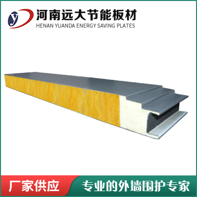 上壓型鋼板、優(yōu)質(zhì)巖棉材料、下壓型鋼板、兩側(cè)為聚氨酯。