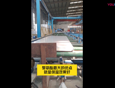 我們公司引進意大利賽浦連續(xù)生產(chǎn)線,采用了六組份在線工業(yè)微機自動操作(SIEMENS)混合澆注技術(shù)。生產(chǎn)流程分為開卷覆膜—壓制成型—鋼板預(yù)熱—高壓發(fā)泡—高溫固化—鋸切—板材冷卻—碼垛—自動打包等功能與一體的自動化生產(chǎn)線,年生產(chǎn)能力為130萬平方米。